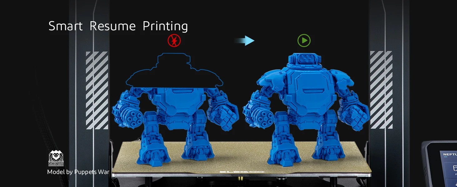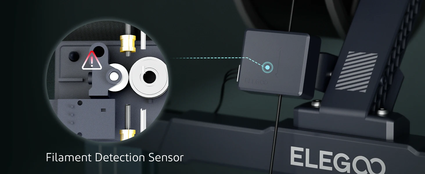 No worry about unexpected power failure during the printing process since the printer can resume printing after the power supply is restored. With a filament detection sensor, whenever the filament runs out or breaks, the printer will pause and alarm until you load the new filament.