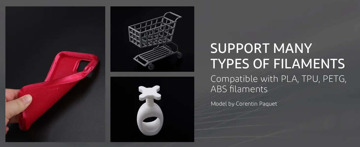 Filament compatibility: PLA, ABS, TPU, PETG, Wood, Marble, etc
