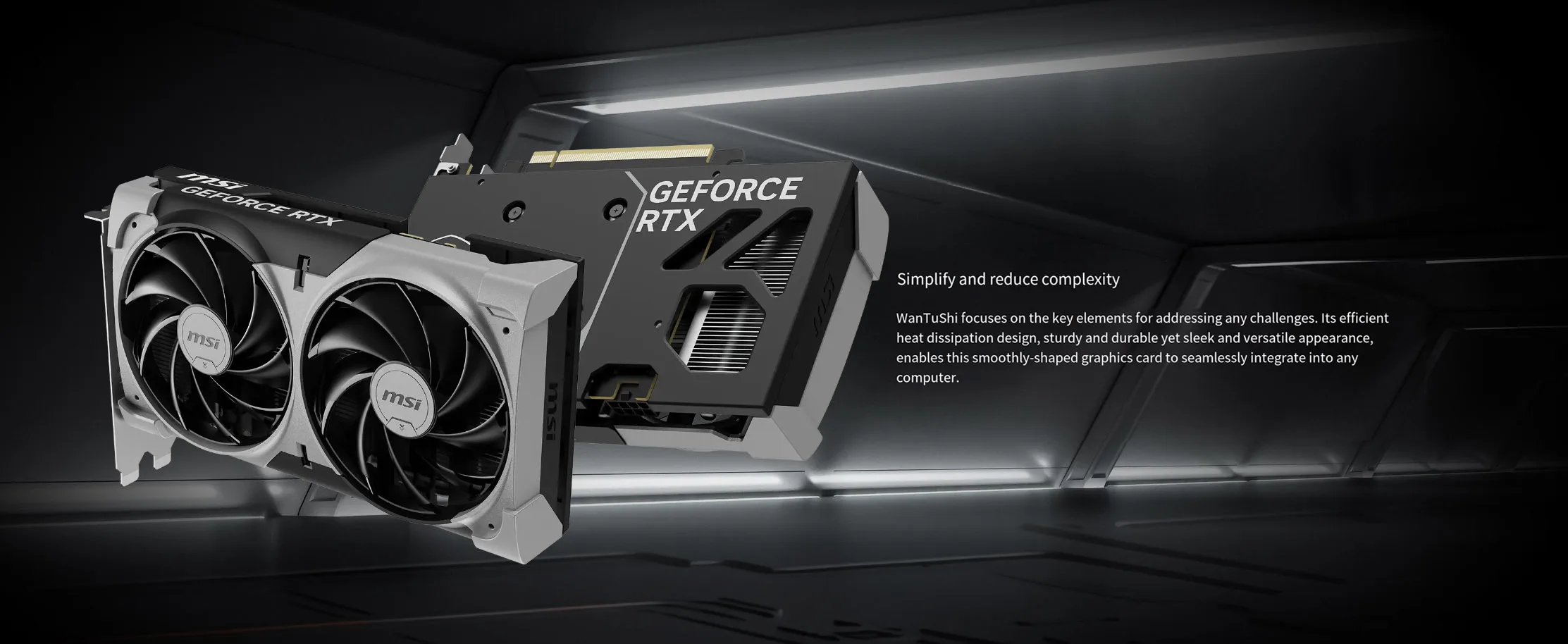 WanTuShi concentra-se nos elementos-chave para enfrentar quaisquer desafios.Seu design eficiente de dissipação de calor, resistente e durável, mas com aparência elegante e versátil, permite que esta placa gráfica de formato suave se integre perfeitamente em qualquer computador.