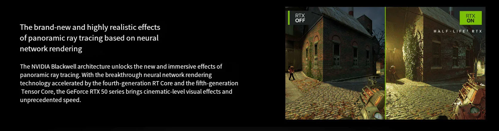 A arquitetura NVlDlA Blackwell desbloqueia os novos e envolventes efeitos do rastreamento de raios panorâmicos.Com a inovadora tecnologia de renderização de rede neural acelerada pelo RT Core de quarta geração e pelo Sensor Core de quinta geração, a série GeForce RTX 50 traz efeitos visuais de nível cinematográfico e velocidade sem precedentes.