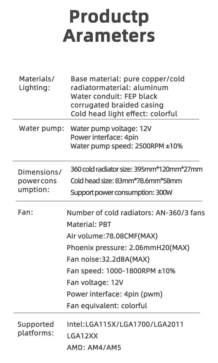 Tamanho do radiador frio 360:395mm * 120mm * 27mm